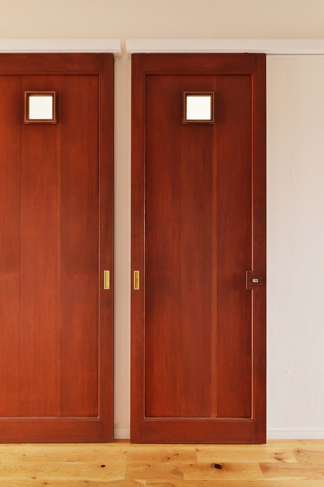 知り合いの家具職人さんがオリジナルで制作してくれた無垢の扉も漆喰の壁とオーク床によくマッチしていて、I様のこだわりが光っていました。