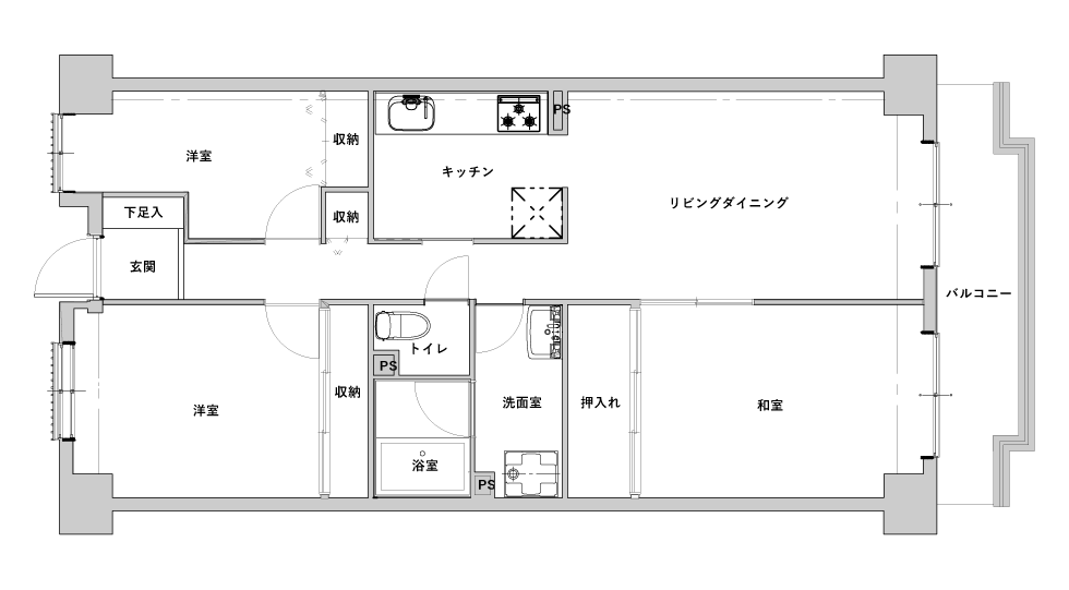 しかし、パイプスペース(通称:PS)の関係で対面キッチンが難しいことが判明。
