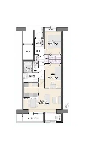 表記上はサービスルームですが、6畳以上ありますので2LDKのような使い方が可能です。