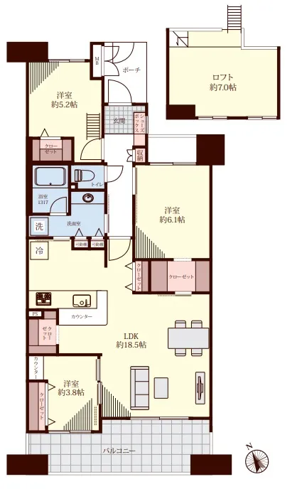 マンションには珍しいロフトのあるお部屋です。 ロフトのあるお部屋は天井高が3.4mもあるので、お部屋も広々感じます。 最上階ならではの眺望も魅力ですので是非一度室内をご覧ください