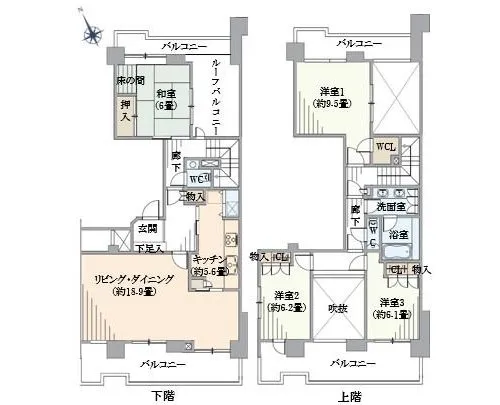 138.49㎡ バルコニー45.46㎡ ルーフバルコニー9.10㎡ |