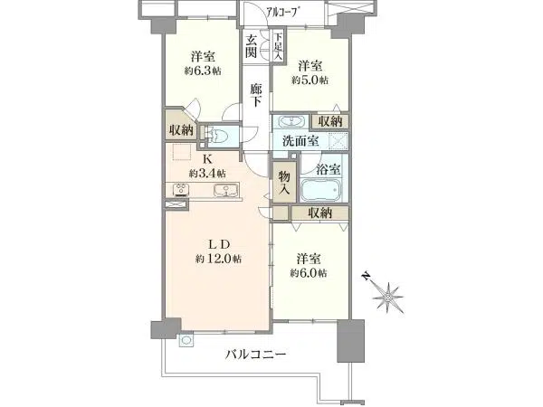 専有面積72.52㎡の3LDK、ペット飼育可能なので、ワンちゃん、猫ちゃんもOKです。