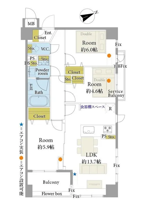 68.21㎡ バルコニー5.27㎡ サービスバルコニー1.32㎡ |