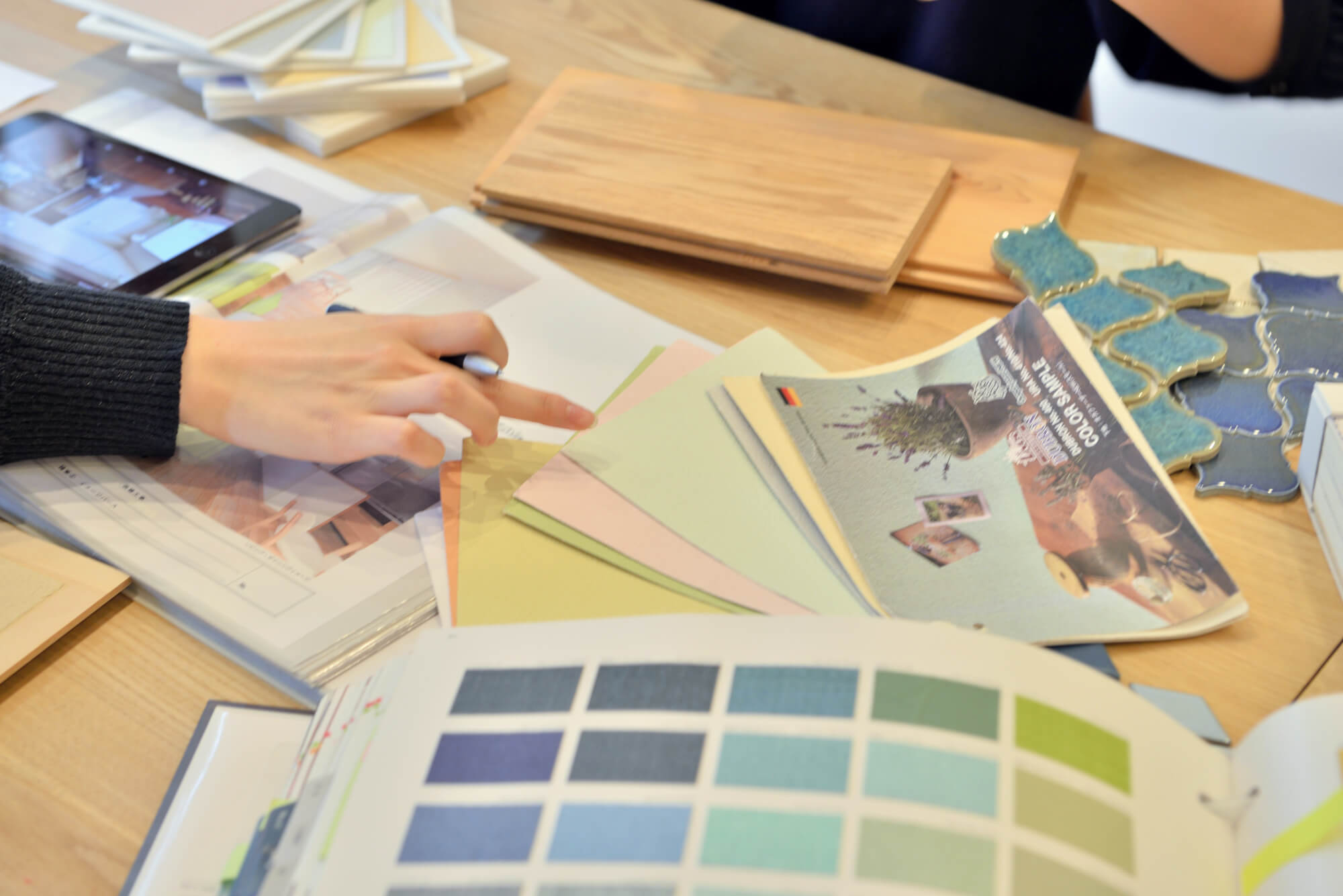 設計が固まったら、使用する素材・塗装・金物を選びます。