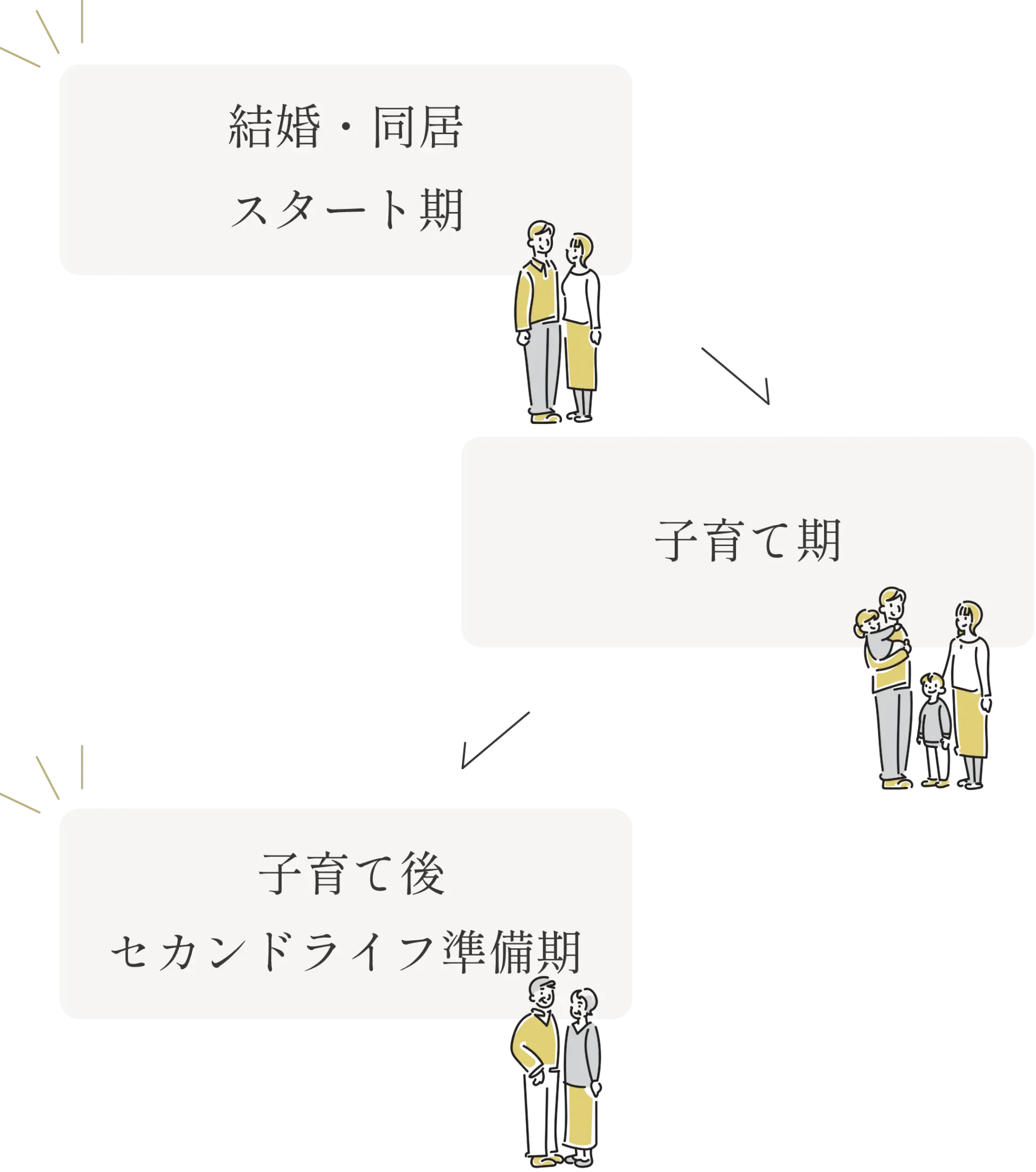 ふたりの生活が始まり、暮らし方を形にしやすい時期。今の心地よさを大切にしながら、将来も見据えた住まいづくりを。